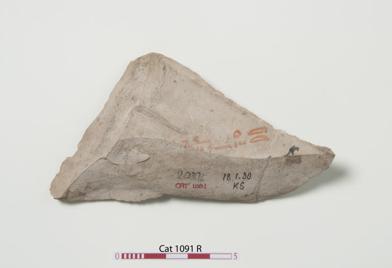 Beim Ostrakon Deir el-Medina 1091 (IFAO Inv.Nr. 2087) des Ägyptischen Museums Kairo handelt es sich um das Fragment einer Kalksteinscherbe von 13 x 6,5 cm Größe, das beidseitig in schwarzer und roter Tinte beschrieben ist.
