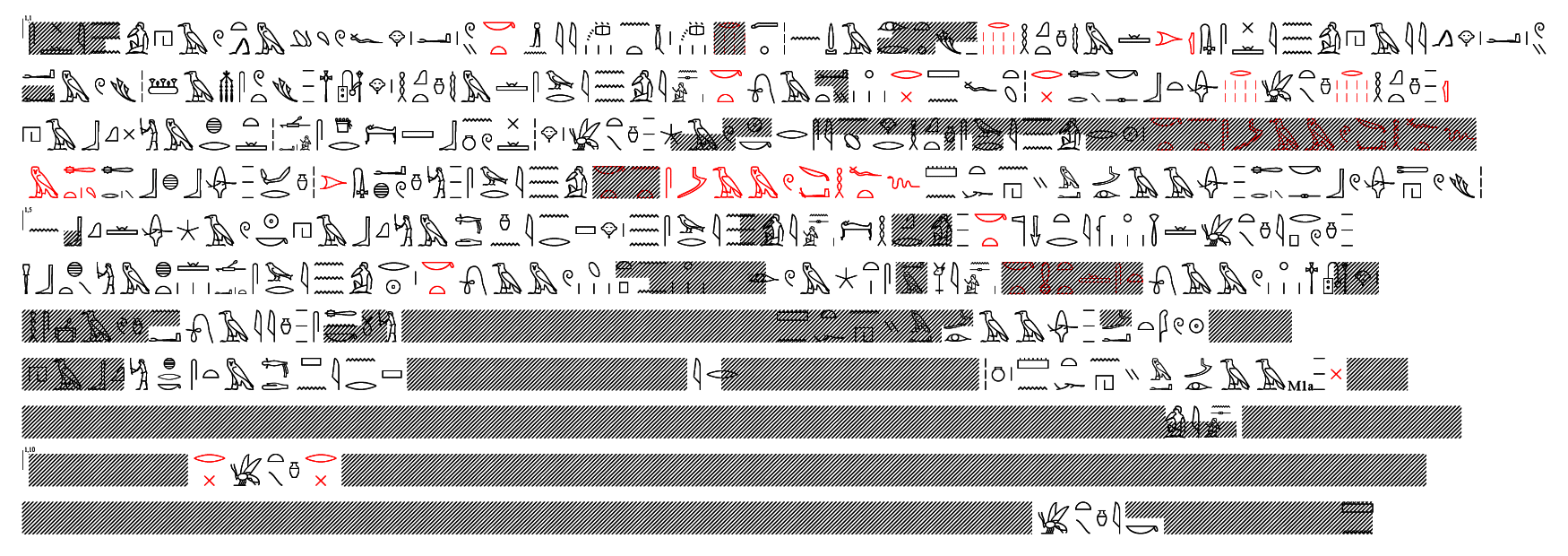 Rezept Nr. 5 (1,3 – 1,4) Ein anderes [Heilmittel] für das Töten des HfAt-Wurmes {1,4} im Bauch: Xr-Teil des bxb-Baumes, Dsrt-Bier 20 ro; kochen, es werde durchgeseiht, trinken durch den Mann.
