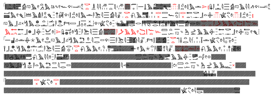 Rezept Nr. 6 (1,4 – 1,5) Ein anderes [Heilmittel] für das Töten des HfAt-Wurmes: Wurzel des Granatapfelbaumes, Xr-Teil des ksbt-Baumes, Thw-Teil {1,5} des Moringa-Baumes. Du mögest früh aufstehen, um es in Wasser zu zerstoßen in einem Mörser aus Stein; trinken durch den Mann, der hungrig die Nacht verbracht hat.