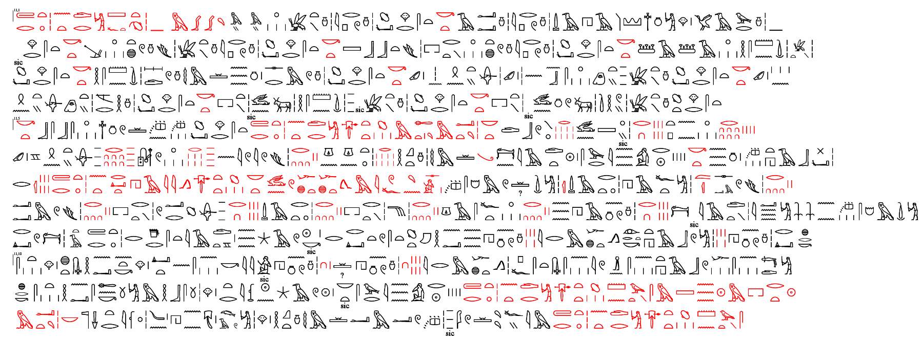 Rezept Nr. 138 (11,7 – 11,11) Ein Heilmittel für das Abgehenlassen aller Schleimstoffe, welche umherziehen im Fleisch des Mannes: zerstoßene Gerste 5 ro, geschälte Koloquinthe 1/2 von 5 ro, sam-Pflanze 1/32, {11,8} aamw-Pflanze 1/32, Wacholderbeeren 1/16, Koloquinthe 1/32, prt-Snj-Frucht 1/32, Gummiharz 1/32, Wasser 16 Hin; nachts [dem] Tau aussetzen, waschen diese zerstoßene Gerste, {11,9} nachts das ganze Heilmittel [dem] Tau aussetzen. Du mögest früh aufstehen, so daß man es gebe [in] einen Kessel zusammen mit 5 Hin Wasser. Was betrifft, nachdem Du eine Eindickung [auf] 5 Hin gemacht hast, so sollst Du es {11,10} auf das Feuer geben, und Du gibst zu ihnen die anderen 11 Hin, zusammen 16 Hin. Was betrifft, nachdem sie gekocht und ihre Eindickung erreicht haben, so sollst Du {11,11} es herunternehmen (von der Flamme) und durch Tücher durchseihen zur Zeit des Morgens. Trinken an vier Tagen.