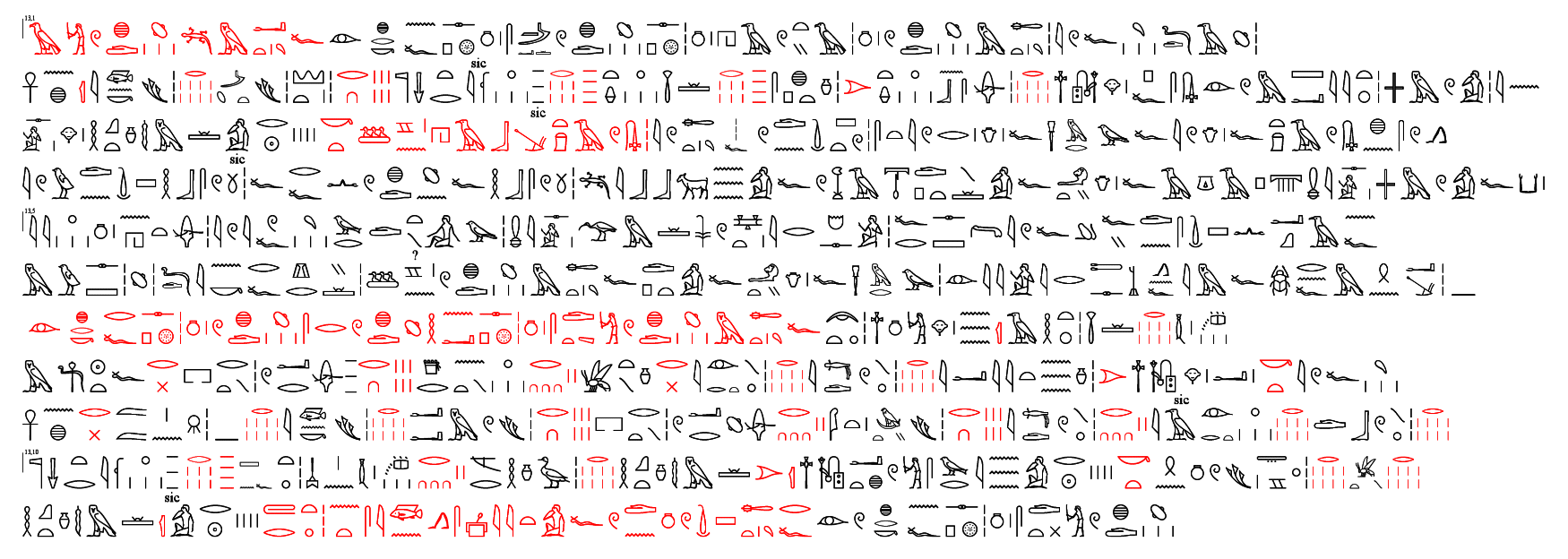 Rezept Nr. 154 (13,3 – 13,8) Ein anderes [Heilmittel für] das Nest des „Umherziehens der Hitze“: Sein Bauch, er ist belastet. Sein Magen, er schmerzt. Sein Herz, es ist heiß und sticht.* {13,4} Seine Kleider sind belastend für ihn, nicht erträgt er viele Kleider. Sein Herz ist umnachtet*, er schmeckt sein Herz, das „bewölkt“ ist wie ein Mann, der gegessen hat unreife (=ungenießbare) Früchte {13,5} der Sykomore. Sein Fleisch ist ermattet wie bei einem Mann, den der Weg geschafft hat. Wenn er sich niedersetzt zum Ausscheiden, so ist sein After belastet, (denn) er hat keinen Erfolg {13,6} beim Ausscheiden des Kots. Dann mußt Du sagen dazu: einer, der leidet an einem Nest von Schmerzstoffen in seinem Bauch, er schmeckt sein Herz; eine Krankheit, die ich behandele. Wenn es darin festgeworden ist und eine Verstopfung entsteht, {13,7} so sollst Du machen dafür Mittel für die Behandlung der Schmerzstoffe sowie Mittel für das Brechen der Schmerzstoffe in seinem Bauch: Erdmandel, fein zerrieben in Wasser 5ro, frischen Brei 1/8, Datteln {13,8} in ihrem weißen Zustand 1/4, Wacholderbeeren 1/16, Drntj 1/32, Honig 1/4, Weinbeeren 1/8, jSd-Frucht 1/8, jajt-Flüssigkeit 20 ro; fein zerreiben, [trinken?] sofort.