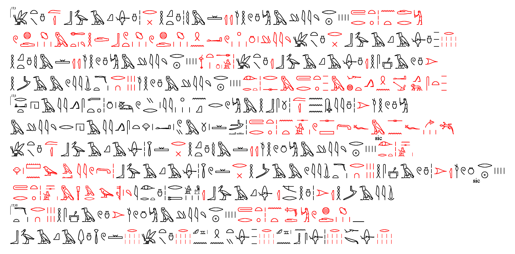 Rezept Nr. 164 (17,1 – 17,6) Ein Heilmittel für das Beseitigen {17,2} der Schmerzstoffe im Bauch, einer Verhaltung der Schmerzstoffe und einer Verstopfung des Afters: Honig 1/4, Behenöl 1/8, {17,3} süßes Bier 10 ro; es werde eingegossen in den After an vier Tagen. Kunstfertigkeit des Arztes: Honig 5 ro, Behenöl 5 ro, Pflanzenschleim 20 ro, {17,4} unterägyptisches Salz 1/16; es werde eingegossen in den After an vier Tagen. Was gemacht wird dagegen als Heilmittel, nachdem er (=der After) verstopft ist: {17,5} Veranlassen, daß es abgeht, (und zwar): Mehl von jwrjt-Bohnen, durchgeseiht durch Tücher, 1/2 von 5 ro, gekochtes Wasser 20 ro; es werde eingegossen {17,6} in den After, so daß es abgeht sofort. Eine erfolgreiche Methode.