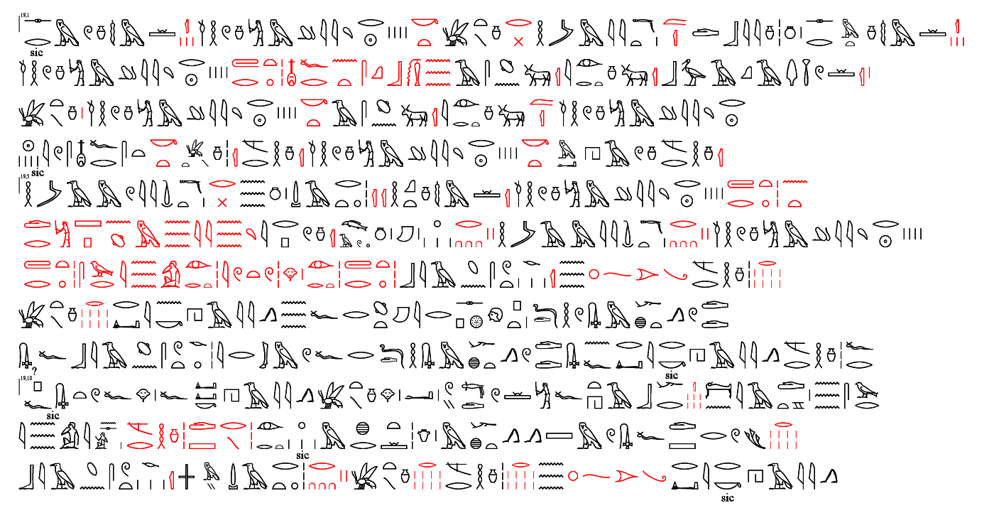 Rezept Nr. 185 (19,11 – 20,4) Rotes Öl, das gemacht wird als Herzmittel, nachdem seine (=des Herzens) Hitze gekommen ist: dSrw-Pflanze 1/8, {19,12} Weizengrütze 5 ro, Inneres der Koloquinthe 1/32, Honig 1/8, Öl 1/8, Wasser 150 ro; Du mußt hineingeben ...