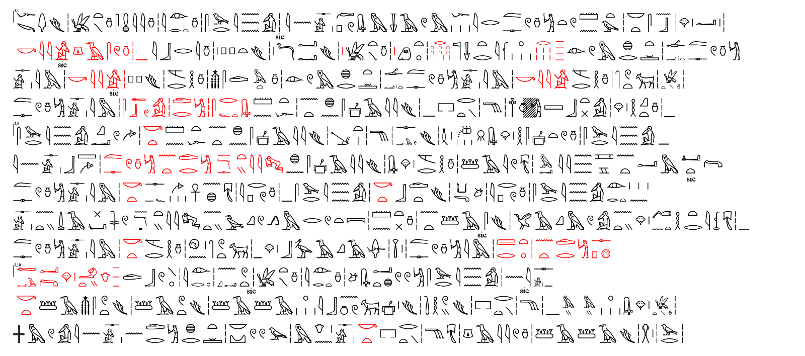 Rezept Nr. 115 (9,11 – 9,12) {9,11} Ein anderes [Heilmittel]: SAms-Pflanze, Koriander, SASA-Pflanze, jbsA-Pflanze, Erbsen, prt-Snj-Frucht, Korn des Emmers; kochen in Honig, {9,12} es werde gegessen durch den Mann, um zu beseitigen jede böse Sache im Herzen des Mannes.