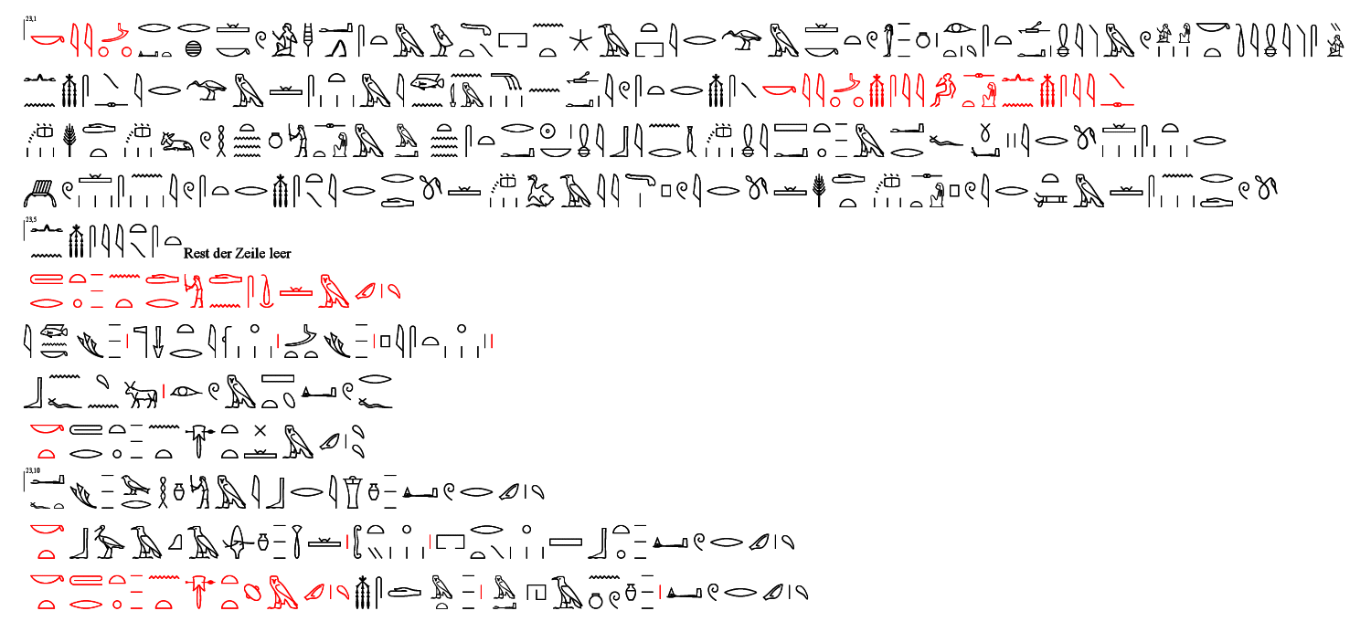 Rezept Nr. 198 (Rs 23,1 – 23,2) {Rs 23,1} Ein anderes Feststellen: Du sollst veranlassen, daß sie sich in die Laibung der Tür stellt. Wenn Du ihre Iris* findest, indem eine ist wie ein Asiat, die andere wie ein Nubier, {Rs 23,2}, so gebiert sie nicht. Wenn Du sie findest in der Färbung einer (der beiden), so wird sie gebären.