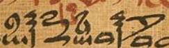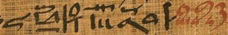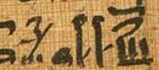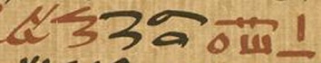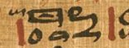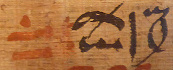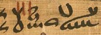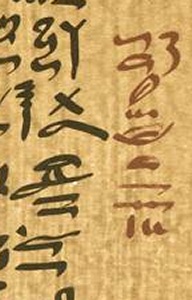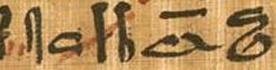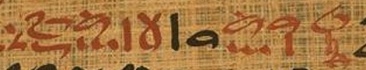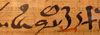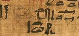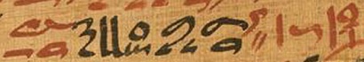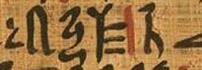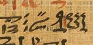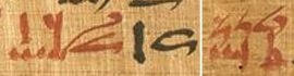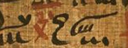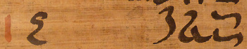 88,22+23 Am Ende der Kolumne 88 wurden zwei Zeilen in gedrängter Schreibweise nachgetragen; der Text setzt sich bis in die Zeile 89,1 fort, welche dort im oberen Kolumnenfreiraum eingefügt wurde. Die Seitenzahl 89 musste dadurch an den oberen Papyrusrand gequetscht werden. |