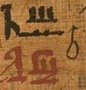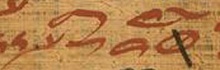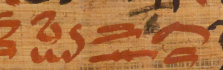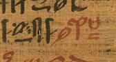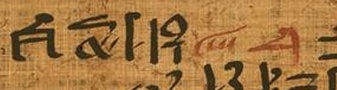 Nachträge von Zeichen oder Wörtern innerhalb der Zeile An zahlreichen Stellen sind zum schon niedergeschriebenen Text Zeichen oder Wörter in meist verkleinerter, gedrängter und teils andersfarbiger Schrift hinzugefügt worden. 1. einzelne Zeichen 1,8 - 12,16 - 24,16 - 37,11* - 39,18 - 63,9** - 63,18 - 69,8 - 69,11 - 72,6 - 74,11 - 85,11 - 87,10 - 87,21** - 97,1 - 97,14 - 108,1 * bei Grapow fälschlich als Nachtrag in roter Farbe beschrieben ** bei Grapow in andere Kategorie einsortiert *** bei Grapow nicht aufgeführt |