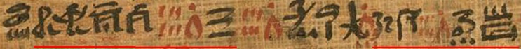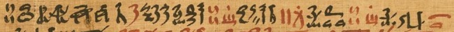 Streichungen Korrekturen nachträglich mitten im Text durchzuführen, hätte Lücken entstehen lassen, welche nicht wieder aufzufüllen gewesen wären. Somit entschied sich unser Schreiber oder ein späterer Nutzer dazu, an einzelnen Stellen die fehlerhaften Zeichen durchzustreichen. Die Streichungen erfolgten in schwarzem Text mit rotem Strich und umgekehrt. Grapow unterschied vier Typen: 1. vermutlich richtige Streichungen * Richtigkeit von Grapow bereits angezweifelt, jedoch trotzdem hier eingefügt |