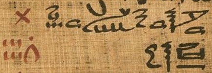 24,9 das Determinativ hinter mH.t zeigt rote Farbreste auf der schwarzen Tinte, so dass es wohl zunächst versehentlich mitgestrichen wurde; der Fehler wurde jedoch korrigiert |