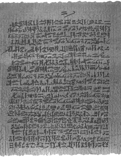 Eb 873 (108, 9 - 108, 17) Heilkunde einer Gefäßgeschwulst: Wenn Du beurteilst eine Gefäßgeschwulst auf den Innenseiten(?) {108, 10} von irgendwelchen Körpergliedern. Ihr Aussehen ist fest, nicht schlängelt sich ein Schlängeln. Sie (=die Gefäße) haben gebildet {108, 11} viele Knoten. Diese (Geschwulst), sie ist wie etwas, das aufgeblasen ist mit Luft. Dann mußt Du sagen dazu: {108, 12} Es ist eine Gefäßgeschwulst. Nicht sollst Du Hand anlegen an selbige, denn diese (Geschwulst) ist eine Verletzung {108, 13} des Körpergliedes durch seine (=des Gefäßes) “Hand”.* Dann sollst Du machen ein (Mittel für das) Lindern der Gefäße an irgendeinem Körperglied des Mannes. Was man sagt als ihren Zauber {108, 14} in Wirklichkeit: “Mögest Du zugrundegehen, umschnürendes Gefäß, das herumspringt zwischen {108, 15} diesen Körpergliedern! Nicht mögest Du Dich vereinigen mit der Vereinigung des Chons.” Wenn Du beurteilst eine Chons-Geschwulst, (sollst Du als Zauber sagen): “Wahrhafter und {108, 16} Süßer, plage mich! Mögest Du veranlassen, daß ich die Maat dem Ra darbringe (und) das Glänzende bei Sonnenaufgang.” Zu sprechen {108, 17} viermal früh morgens.