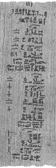 pEbers 10 (3,3 - 3,9) {3, 3} Ein anderes [Heilmittel]: {3, 4} aaAm-Pflanze 1/8, {3, 5} Koloquinthe 1/8, {3, 6} Snj-tA-Frucht 1/8, {3, 7} Honig 1/32, {3, 8} zu einer einheitlichen Masse machen, {3, 9} essen durch den Mann an einem Tage.