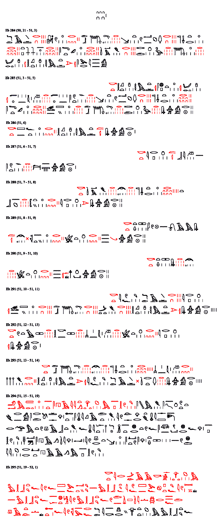Bemerkungen: 1. In Zeile 51, 9 steht die Quante 10ro (‡) über einer Löschung. 2. Ebenfalls wurde das t von nHb.t in Zeile 51, 22 über zuvor gelöschten Text geschrieben.