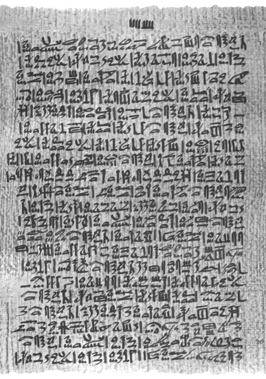 Eb 679 (84, 10 – 84, 12) Ein anderes [Heilmittel]: helles Fett 1, Gänsefett 1, Fett des Steinbocks 1, Harzperle des {84, 11} Wacholders 1, Föhrenöl 1, süßes Myrrhenharz 1, SASA 1, Zwiebeln 1, Wachs 1, kochen, {84, 12} verbinden damit.