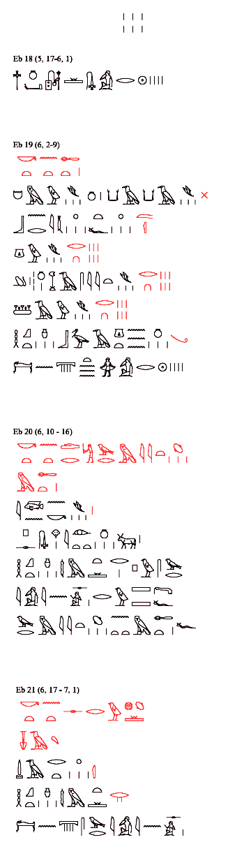 pEbers 21 (6, 17 - 7,1) {6, 17} Ein anderes [Heilmittel] für das Behandeln {6, 18} der Lunge: {6, 19} Koloquinthe 5 ro, {6, 20} süßes Bier 2/3, ...