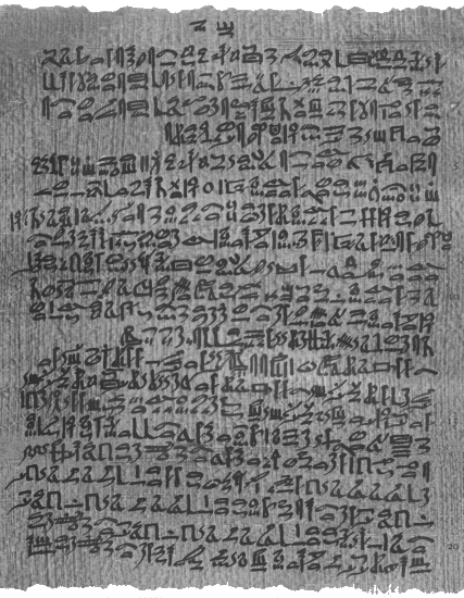 Eb 833 (97, 1 - 97, 7) Wenn Du untersuchst {97, 2} eine Frau, die verbracht hat viele Jahre, ohne daß ihr gekommen ist ihre Menstruation; sie erbricht etwas wie Überschwemmungswasser; {97, 3} ihr Bauch ist wie einer, der an einem Feuer leidet, das (erst) zufriedengestellt ist, nachdem sie erbrochen hat. Dann sollst Du dazu sagen: {97, 4} Es ist ein Blutstau in der Gebärmutter, dadurch daß sie (=die Gebärmutter) beschworen ist [....Textlücke, Rest der Zeile leer.........] {97, 5} Beischlaf. Dann sollst Du für sie machen: Wacholderbeeren 1/32, Kümmel 1/64, Weihrauch {97, 6} 1/64, Erdmandeln 1/16. Dann sollst Du geben Milch des Rindes 80ro auf das Feuer gemeinsam mit Knochenmark des {97, 7} Beinknochens, geben auf diese Milch, trinken davon an vier Tagen.