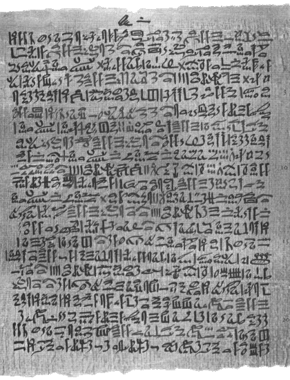 Eb 262 (48, 22 - 49, 2) {49, 1} ... Anhäufungen von Harn, die sich in seinem Bauch befinden: ein alter Brief, der zerkocht ist in {49, 2} Öl, salben den Bauch richtig und er scheidet aus.