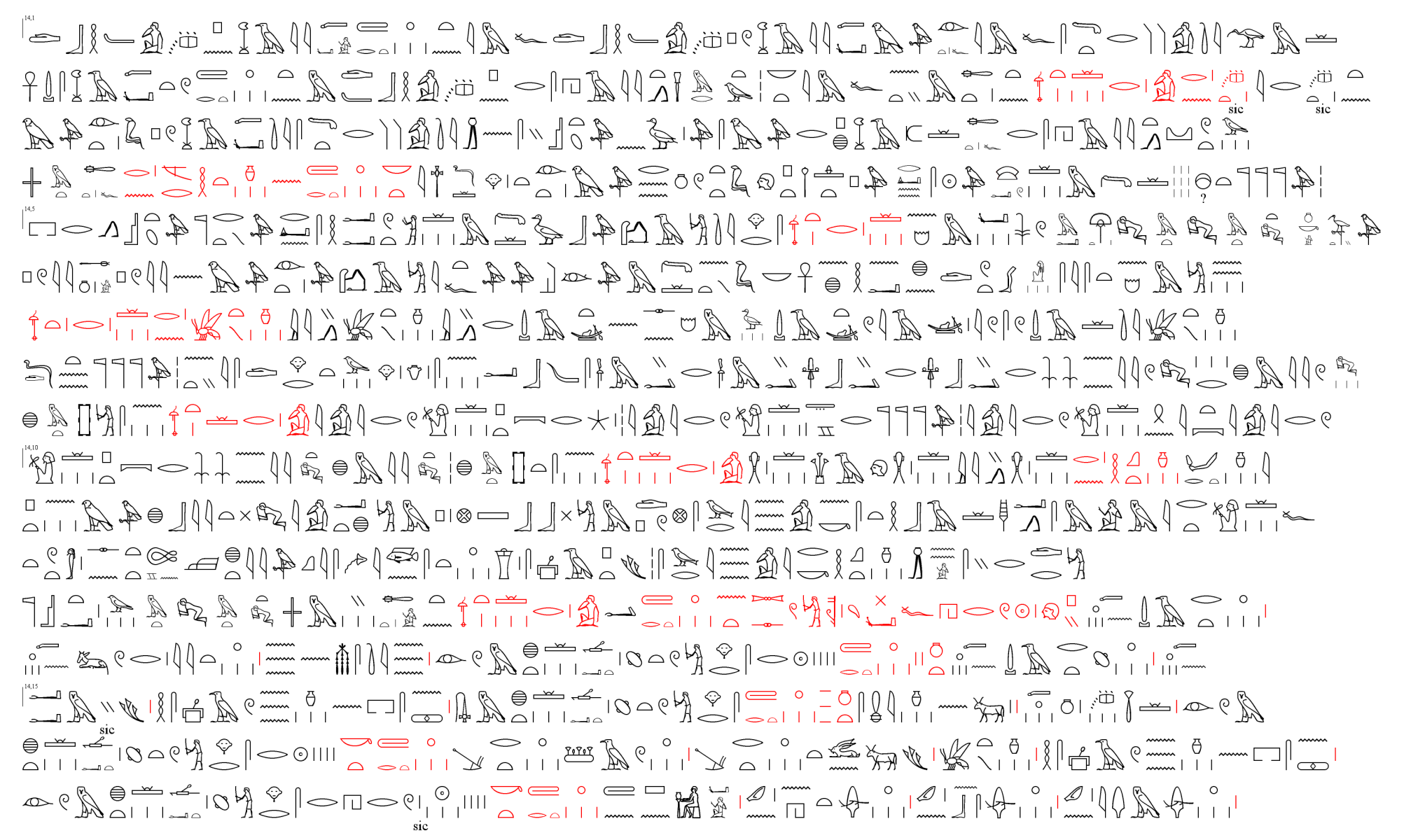 Rezept Nr. 214 (14,4 - 14,7) Spruch für das Öl eines jeden Heilmittels: Sei gegrüßt, Horusauge, und Renennutet, die auf dem HD-Htp-Gott Befindliche. Ra hat ihr Glanz gegeben vor der Götterneunheit. {14,5} Es kommt heraus Isis, die Göttin, ihr wird Freude verliehen vor Geb. Hab acht vor ihr - beliebig fortzusetzen - ! Rettet ihn vor dem Schatten eines Toten (oder) einer Toten. Ich bin dieser Thot, {14,6} dieser Arzt des Horusauges, der kämpfte [für] den Vater Osiris vor Neith, der Herrin des Lebens, sowie ihren Weberinnen. Nun aber haben wir gerettet {14,7} - beliebig fortzusetzen.