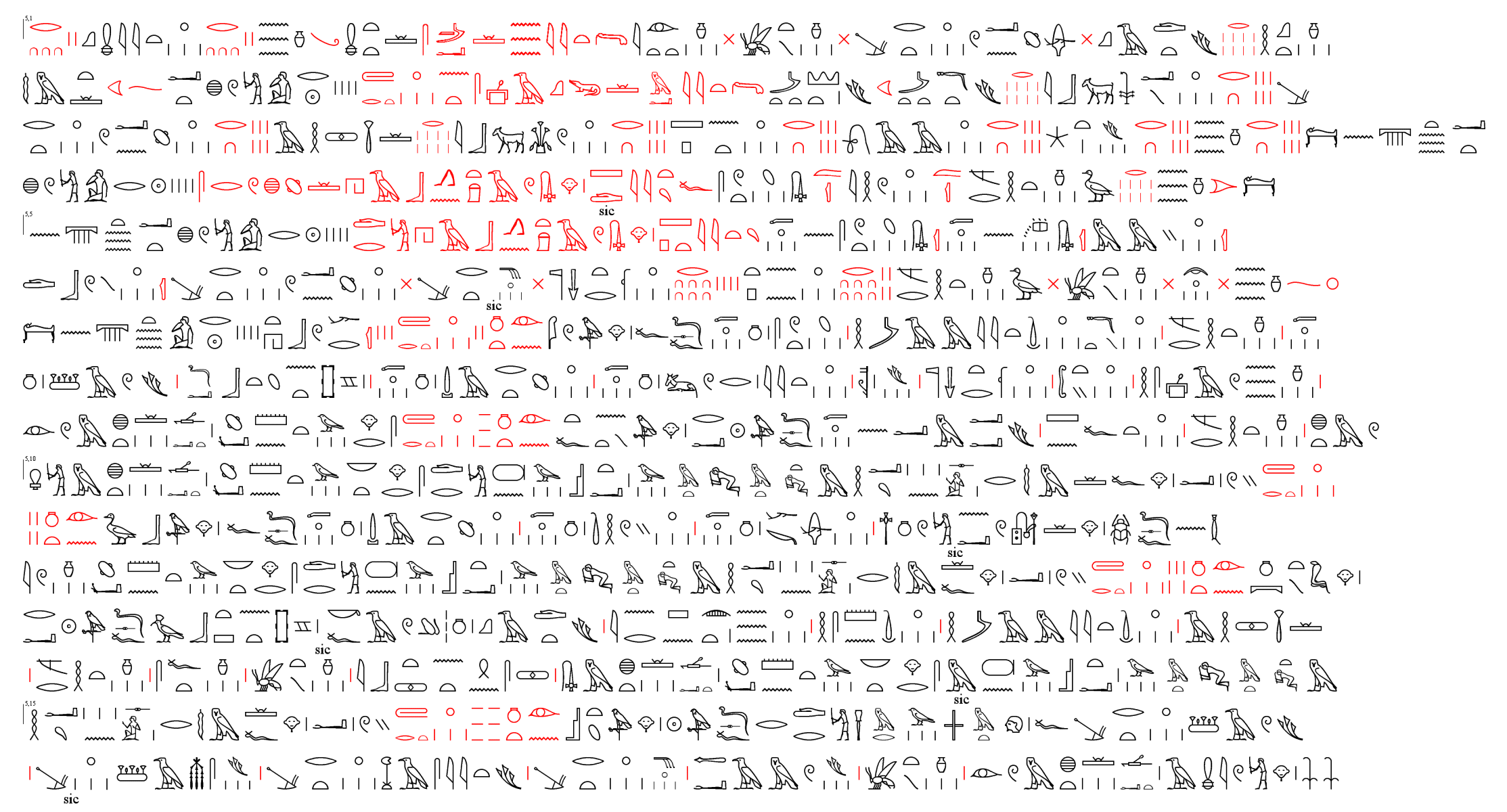 Rezept Nr. 74 (5,12 - 5,15) vgl. pEbers Nr. 246 Ein fünftes Heilmittel, das gemacht hat Nut für {5,13} Ra selbst: Ziegel von der Mauer [?], Fruchtkapseln der oAdt-Pflanze 1, Stein des Ufers* 1, Natron 1, Salz 1, frischer Brei {5,14} 1, Öl 1, Föhrenöl 1, Honig 1, Fladen von Opferkuchen 1; kochen zu einer einheitlichen Masse, verbinden jede schmerzende Stelle damit. [Das bedeutet ein Beseitigen] des Leidens, der Einwirkung eines Toten oder einer Toten im {5,15} Körper des Mannes, so dass es ihm besser geht sofort.