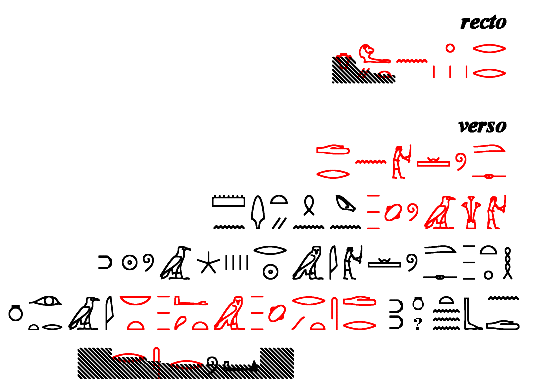 Auf der Rückseite finden sich 5 Zeilen in ordentlicher, gekonnter Schrift ohne Ligaturen, die zwei Rezepte zur Behandlung von Hautausschlägen beinhalten. Die 5. Zeile ist abgebrochen; wieviel an Text dadurch verloren ging, ist unklar.