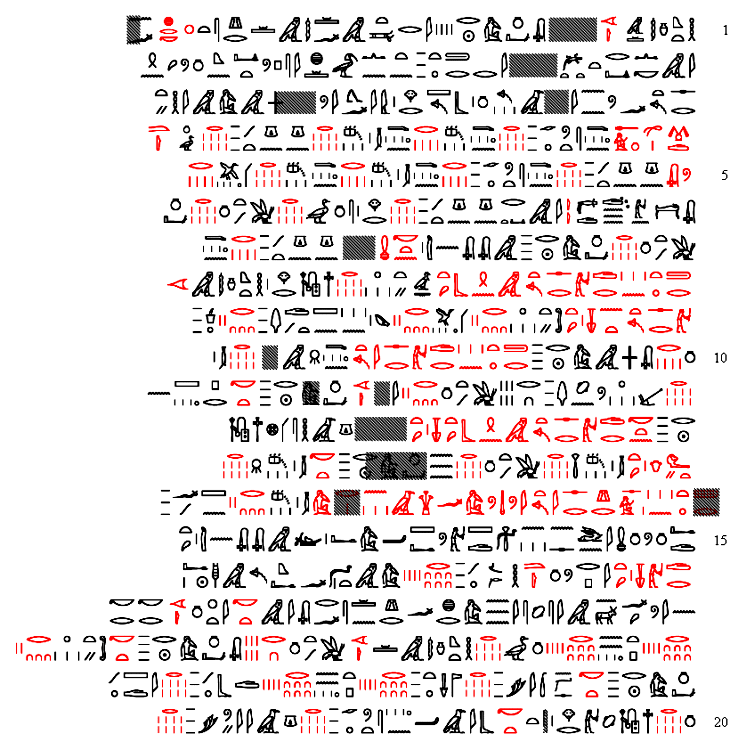 ______________________________ gngnt - eine Pflanze ähnlich den kretischen Bohnen nHdt - ein nicht näher bezeichnetes Mineral psD - eine nicht näher bezeichnete Frucht prS - Rötel (Eisenoxid)? Mennige (Bleioxid)? Snft - eine Kornfrucht? krkr - ein nicht näher bezeichneter Arzneistoff (identisch mit ktkt-Pflanze?) nstjw - rote Schlangenwurzel? Schminkwurz? (mit rotfärbender Wurzel) jSd - Schwarze Brustbeere? Sebeste?