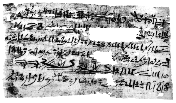 nur an Motivation, ein schönes Schriftbild zu erzeugen. An den Stellen, die direkt mit dem Erdreich in Berührung kamen, finden sich Beschädigungen, die zum Verlust einiger kleiner Fragmente im geschriebenen Text geführt haben. Der Inhalt des Papyrus ist ein magischer Spruch, der den Besitzer des Amuletts, ein Mann names Ani-Nacht (Sohn der Ubechet), vor Erkältung, insbesondere Fieber und Schnupfen, bewahren soll. Medizinische Anteile wie Vorschriften für die Zubereitung eines Heilmittels (i.Ggs. z.B. zu pEbers 763) fehlen völlig. Lediglich eine Anweisung, den Spruch über sechs selbstgezeichneten Bildern zu sprechen, ist beigefügt. Die Datierung des Papyrus erfolgt aufgrund der (wenigen) paläographischen Anhaltspunkte in die 20. Dynastie. Dies läßt sich jedoch dadurch konkretisieren, daß die Person des Ani-Nacht vermutlich ein Arbeiter an den Königsgräbern zu Ende der Regierungszeit Ramses III. gewesen ist. Nimmt man desweiteren an, daß Ani-Nacht das Papyrus-Amulett am ehesten als Kind erhalten hat und seine Mutter Ubechet die in den Gräbern 216 und 355 erwähnte Ehefrau des Chefs der Arbeiter ist, so stammt der Papyrus mit annähernder Sicherheit aus dem Beginn der Epoche Ramses III. zwischen 1180 und 1160 v.u.Z.