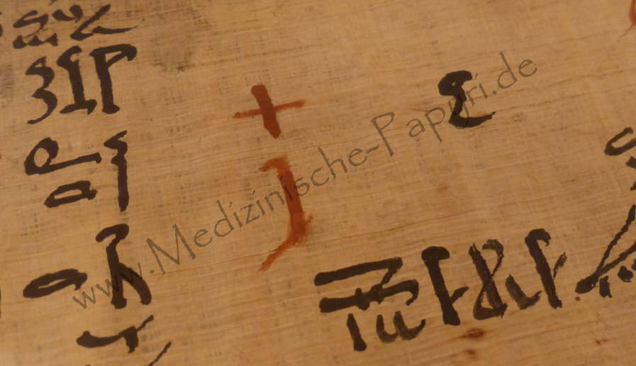Papyrus Ebers, Kolumne 6, Zeilen 19+20; die Quantenstriche am Zeilenende wurden jeweils in andere Quanten geändert