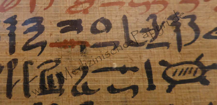Papyrus Ebers, Kolumne 86, Zeile 11; ein schwarzes n (?) wurde mit roter Tinte in ein s korrigiert